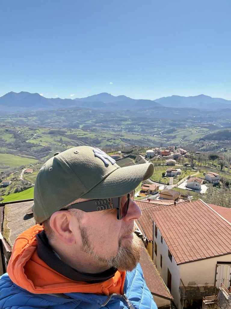 Salire a Montefusco, soprattutto nei giorni di sole, è una sorta di pellegrinaggio, perché Montefusco è come un tempio. Un paesino arroccato sulla punta di un monte nel bel mezzo di una delle valli più belle della Campania, cioè quella del Calore, diventa un punto di osservazione privilegiato tra Irpinia e Sannio. E guardando da qui ti accorgi davvero quanto siano uguali l’Irpinia e il Sannio, o almeno quello che oggi chiamiamo Sannio, ossia la provincia di Benevento, perché in passato questi territori non conoscevano divisioni ed erano davvero tutti Sannio, quello vero, ossia quella confederazione di popoli che era chiamata Sannio. Oggi i Beneventani e gli Avellinesi litigano per questioni futili, come le partite di pallone, chiudendo gli occhi su quanto potremmo realmente contare stando insieme, così come abbiamo sempre fatto lungo il percorso della storia. Qui ha davvero funzionato l’antico principio del “dividi ed impera”, creando rivalità fittizie anche dove non esistono. Per fortuna che io, per metà sannita e per metà irpino, faccio da ponte e da punto di contatto tra le due realtà, riportando tutti con i piedi per terra. Credo che dovrebbero darmi le cittadinanze onorarie da una parte e dall’altra, e visto che ci siamo, anche nel Molise, che pure anticamente era parte importantissima del Sannio.