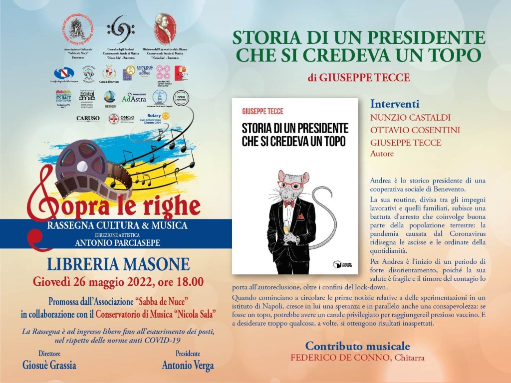 Oggi si parla del Topo Andrea Pubblicato daGiuseppe Tecce26 Maggio 2022Pubblicato in: Blog, narrativaTag:Giuseppe Tecce, il mio libro, Libri, libro, Storia di un Presidente che si credeva un topo Questo pomeriggio alle 18, saremo alla libreria Masone di Benevento per parlare del mio libro. “Sopra le righe”, il sannita Tecce presenta il romanzo “Storia di un Presidente che si credeva un topo” Condividi:Tweet Fai clic per condividere su Telegram (Si apre in una nuova finestra) Telegram Fai clic per condividere su WhatsApp (Si apre in una nuova finestra) WhatsApp Fai clic per inviare un link a un amico via e-mail (Si apre in una nuova finestra) E-mail Mi piace Caricamento... Pubblicato da Giuseppe Tecce Scrittore di saggi e romanzi Visualizza più articoli