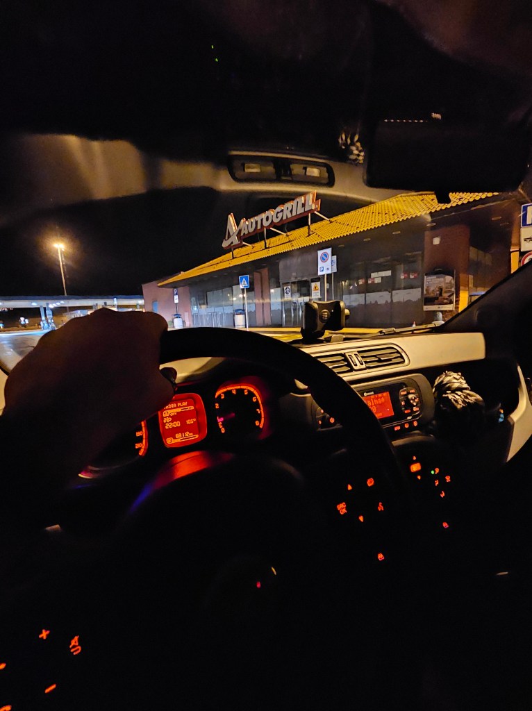 3) e la terza foto che c’entra, direte? Bene, il paese era morto, pioveva a dirotto, ma io dovevo fare pipì. Vabbhe, penso, adesso scendo sull’autostrada e mi fermo all’autogrill. Perfetto, la terza foto vi mostra l’autogrill… chiuso. Avete mai visto un autogrill chiuso?