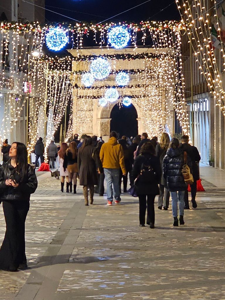 L’Arco di Traiano a Benevento fu inaugurato nell’anno 114 d.C. per celebrare l’imperatore Traiano e le sue numerose conquiste, in particolare le vittorie nelle guerre daciche. L’arco è riccamente decorato con bassorilievi che illustrano scene delle campagne militari di Traiano e altri eventi significativi del suo regno. È considerato uno dei migliori esempi superstiti dell’arte e dell’architettura romana dell’epoca.