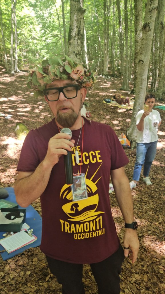 Sì chiude la seconda edizione (la prima istituzionalizzata) del Festival “Letture Dal Bosco” a Lago Laceno. Il Festival è stato molto partecipato ed il bellissimo bosco di faggi del Piano dei Vaccari ci ha accolti con un clima fresco ed amorevole. Grazie a tutti coloro che hanno partecipato all’evento, a Mariano Graus che ha partecipato in rappresentanza della Graus Edizioni, a Pietro Graus, che non ha mancato di farci sentire la sua vicinanza, anche se non presente, a Marta Krevsun autrice di bellissime poesie, che ci ha portato un’aria di giovinezza e di bellezza. Un ringraziamento anche agli altri due membri della giuria: Rosanna Lemmo, che, come al solito, è stata impeccabile e professionale, e a Maria Grazia Nazzaro che si è prestata con grande attenzione al nostro gioco. Ci sono stati i primi vincitori dell’evento: Domenico Spinelli, terzo classificato, Nuccia Maresca, seconda classificata e Stefania Napolitano, prima classificata. A loro le bellissime opere d’arte prodotte da Avventura di Latta di Napoli. Un ringraziamento a La Vie En Rose Fiori e Piante che ha superato se stesso, realizzando la corona simbolo del Festival di una bellezza ineguagliabile. E un grazie anche a Michela Ottobre, che ha concluso la manifestazione con il rito per il “Piccolo Popolo”.