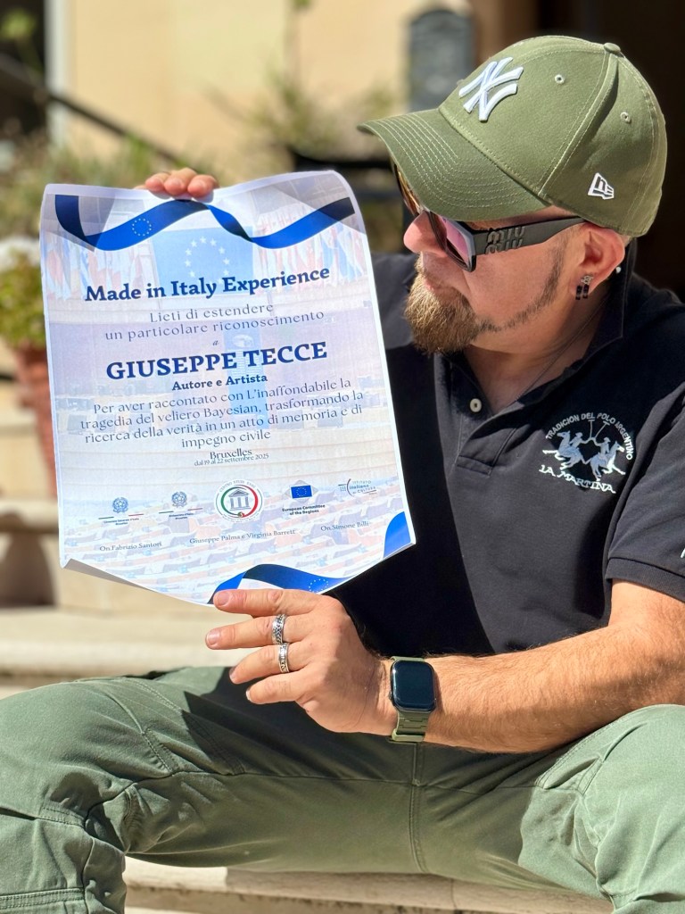 Oggi non parlo io, ma parla questo attestato. Mentre intorno a noi regna la mediocrità, mentre tutti si accontentano di sopravvivere galleggiando, io ho ricevuto un importante riconoscimento europeo per il mio lavoro da autore e, più in generale, da artista. Un attestato che ho ricevuto a Bruxelles, che mette nero su bianco che con “L’inaffondabile” ho trasformato una tragedia in una memoria viva e in un impegno civile.