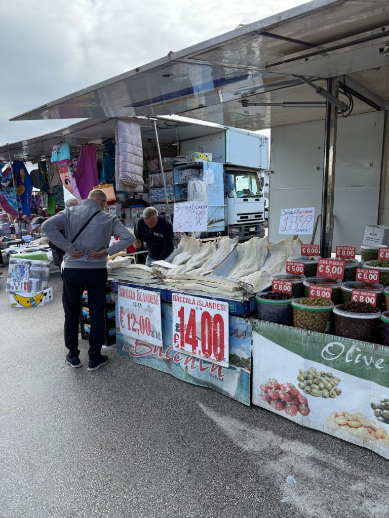 Il baccalà, il pesce di montagna. Il pesce che si mangia da sempre, qui da noi, sull’Appennino. Fogli di pesce, che fanno un viaggio lunghissimo, prima di arrivare a dimora. Poi li ritrovi nei mercatini di paese, fatti a strati, pieni pieni di sale, da trattare prima di poterne fare tante gustose ricette. La foto è stata scattata questa mattina a Paternopoli.