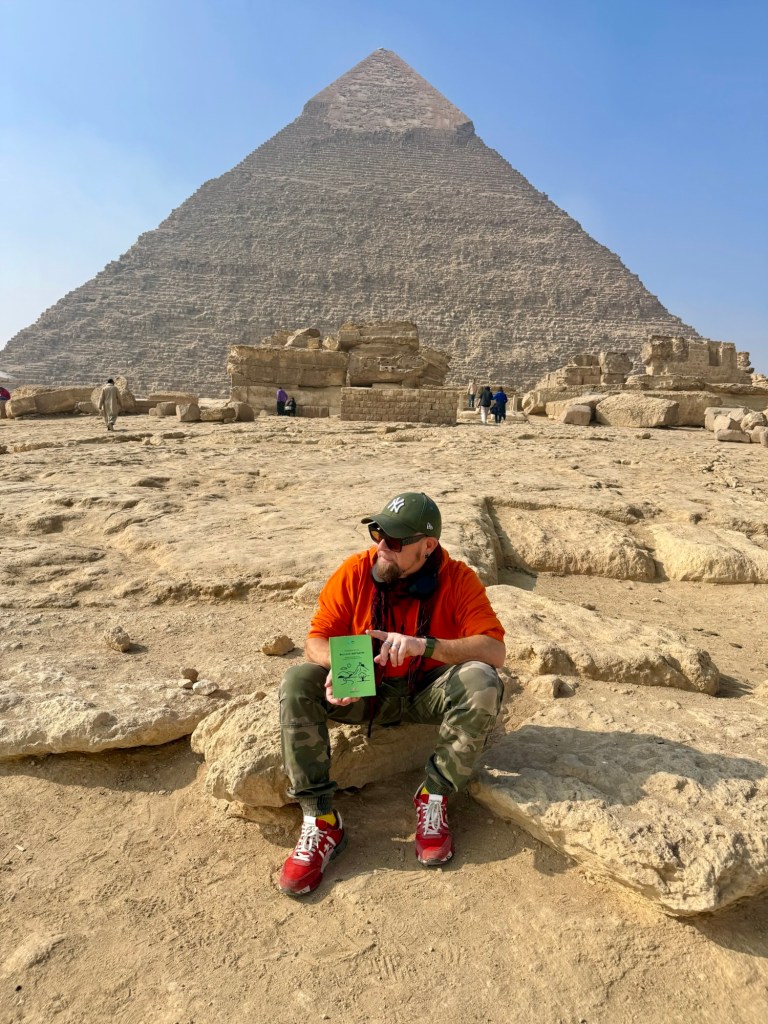 L’Irpinia mi ha seguito anche qui, all’ombra delle Piramidi, e, dunque, era obbligatorio uno scatto con i miei “Racconti dall’Irpinia”, proprio davanti alla Piramide di Chefren.