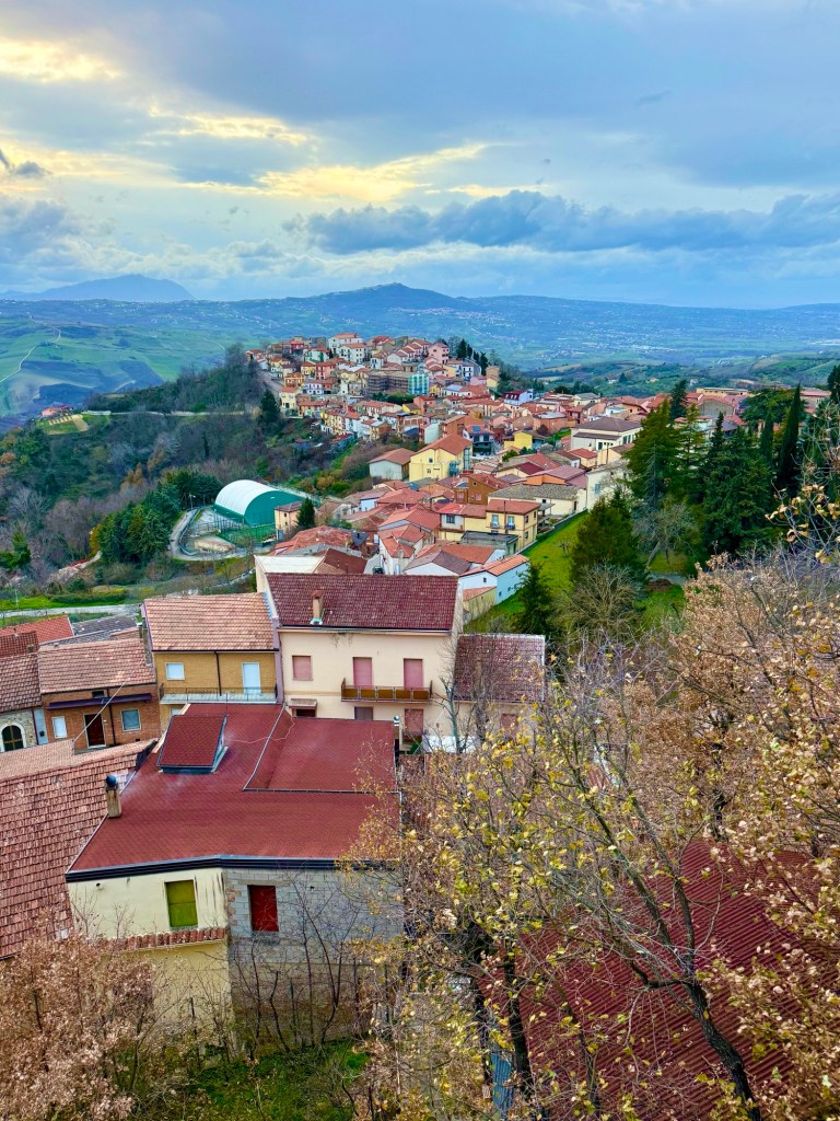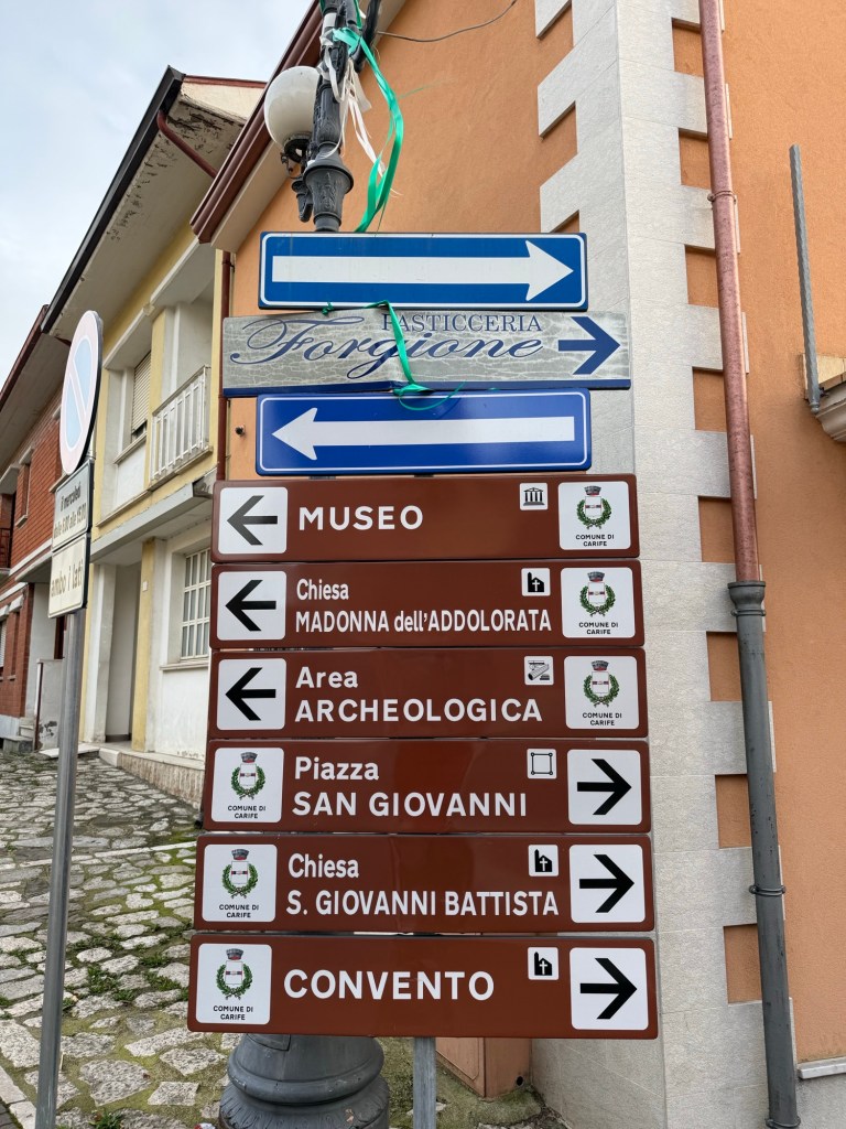Sale la vista quando si alzano le terre d’altura, quando si giunge sulla cima del monte da cui si gode di una vista ampia, come aquila, che dall’alto cerca la sua preda, la individua per tuffarsi infine in picchiata per ghermirla. Le terre alte sono il nido in cui vivono rapaci mitologici, che tanto hanno fatto trepidare contadini d’altri tempi, che li osservavano attaccare i propri allevamenti, ma che tanto hanno fatto sognare coloro che sapevano guardare oltre il gesto dettato dal mero soddisfacimento di un bisogno impellente, immaginando, in epoche remote, lontane dalle attuali tecnologie, ciò che essi potevano guardare. La vista a volo d’aquila è una prerogativa, oggi, riservata anche a noi comuni mortali, che possiamo cimentarci con i nostri smartphone in visioni che in altri tempi potevano essere definite oniriche. Il massiccio dei monti della Baronia incombe sopra, ancora più alto di me, che mi sono fermato nella curva più panoramica, tra murales che colorano l’intero muro di cinta con persone di ogni colore e razza che si abbracciano di spalle, con lo sguardo rivolto verso l’immensa valle. È l’Appennino meridionale, che qui si coniuga in alture, anfratti e valli, che si insinuano come un cuneo tra la Puglia e la Basilicata, nella nostra Irpinia d’Oriente. Si respira un’aria rara, fatta di fatica e armonia, di pace e di grazia, in questa domenica invernale, che ci regala colori eterei e paesaggi mozzafiato. Spingo con le ginocchia contro il muro mentre di fronte a me si apre un mondo fatto di terre e poesia, di nebbie sottili, di un’unica grande valle e di profili silenziosi di monti che salgono verso le sparute nuvole. Sturno è proprio di fronte a me, distesa come una matrona su un triclinio. Oltre, più in alto, scorgo Frigento, Guardia Lombardi e più in là le terre sconfinate e brulle del Formicoso. Lo sguardo si abbassa, all’altezza delle mie ginocchia, che premono contro il muro, mentre io, estasiato, volgo lo sguardo su una striscia di tetti, che si allungano verso ponente, su un costone di roccia che sembra fatto apposta come basamento per le opere umane. Sono sempre stato colpito dall’ingegnosità umana, che ha saputo costruire le proprie dimore nei luoghi più impensati. Carife è un luogo antico, dove l’ingegno è stato, da sempre, messo a servizio dell’umanità, che qui ci abita da millenni. Sono terre che vantano un rapporto con l’uomo che si perde nella notte dei tempi, quando queste valli scoscese erano vissute da popolazioni fiere e guerriere. Qui il Sannio aveva la sua propaggine che penetrava ad oriente, verso la terra dei Dauni. La grande e fiera tribù degli Hirpini viveva queste terre da tempo immemore, che solo il falco e il gheppio sanno quantificare. Le gesta e gli ornamenti di quegli eroi sono oggi conservati nel bel museo archeologico dedicato agli Hirpini e alla civiltà Sannita. Conserva resti, soprattutto corredi funerari, trovati in diversi scavi effettuati tra Castel Baronia e i dintorni di Carife. Sono il segno tangibile di chi ha abitato quegli stessi luoghi ben prima di noi. Entrare nel museo significa abbassare lo sguardo, camminare nella storia, guardare verso la terra e non più verso la valle. Quest’ultima ha custodito in sé fibule, monili, armi, i resti di una vita quotidiana che aveva il peso della necessità e la grazia del rito. Ho lasciato la mia Giallina a ridosso di un alto muro di cinta, proprio di fronte al bar pizzeria “Amore Mio”. Il titolare mi ha accolto con benevolenza. Si chiama Franco ed ha il volto sereno di chi sa di vivere dalla parte del giusto. Franco mi da tutte le dritte necessarie per comprendere l’anima del paese. Un avventore del bar si presenta: Antonio Tedeschi, e mi completa il quadro delle informazioni relative al paese. Anche Carife, come tutti i nostri centri, soffre di una malattia moderna, che si chiama emigrazione, o, vista dall’altro lato, spopolamento e desertificazione. È un male moderno, di cui, sotto certi versi, ci si era già ammalati, soprattutto nei periodi successivi alle due grandi guerre. Ma si trattava di migrazioni diverse. In quell’epoca erano soprattutto gli uomini che andavano via, soprattutto braccia sottratte all’agricoltura, operai, persone che sapevano far cose con le mani. Oggi, invece, le condizioni sono cambiate. Ad andare via sono i giovani, quelli che hanno in mano una laurea, che qui, non vedono nessuna prospettiva di crescita. Comincia così la nuova via per la migrazione, e i nostri paesi si spopolano. La chiacchierata mi ha messo addosso un po’ di malinconia, pensando a quanto i nostri avi abbiano investito su queste terre, a quanto grande era stato l’attaccamento al territorio e a quella che Verga chiamava “la roba”. La terra, la casa, gli attrezzi da lavoro, ossia tutta la roba necessaria per vivere e per sopravvivere, oggi è diventata roba superflua, che viene smaltita in fretta, pur di cominciare una nuova vita da qualche altra parte nel mondo. Così anche a Carife, ci sono tanti cartelli “Vendesi” appesi ai balconi delle case. Per smaltire la malinconia, decido di fare una passeggiata. Percorro a piedi tutta via Melina, e poi via Addolorata, fino ad arrivare alla piccola chiesetta dell’Addolorata, posta proprio al centro di un trivio. Non c’è nessuno in strada, ma decido di entrare in chiesa. Apro con rispetto la porta fatta con ampie ante di vetro, e mi immergo nel clima mistico della piccola chiesa di questo piccolo paese dell’Appennino Meridionale. Dentro l’aria che si respira è diversa, fatta di poco ossigeno e tanta spiritualità. La statua dell’Addolorata è lì, al centro, composta e ferma come solo il dolore interiore sa essere. Non c’è disperazione nel suo volto, ma una resa lenta, consapevole, che ha attraversato i secoli. Le mani sono giunte, non sono strette: sembrano più in attesa che in preghiera. Il rosario scende lungo il corpo come una linea di continuità, un filo che lega il 