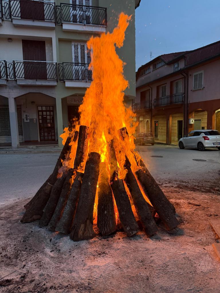 Decido di alzarmi e di mettermi in gioco, ma il giorno è ancora lungo davanti a me e sono curioso di esplorare Lioni, ma, soprattutto, non vedo l’ora che arrivi il buio, per festeggiare, come un contadino di altri tempi, la luce rigeneratrice del fuoco, portatrice di rinnovamento e fertilità. Le giornate sono brevissime, ormai, e già prima delle cinque mi ritrovo in piazza, dove mani esperte, appiccano il fuoco ad una enorme catasta di legna, accuratamente selezionata e posizionata per alimentare con costanza un fuoco che non deve osare di spegnersi.