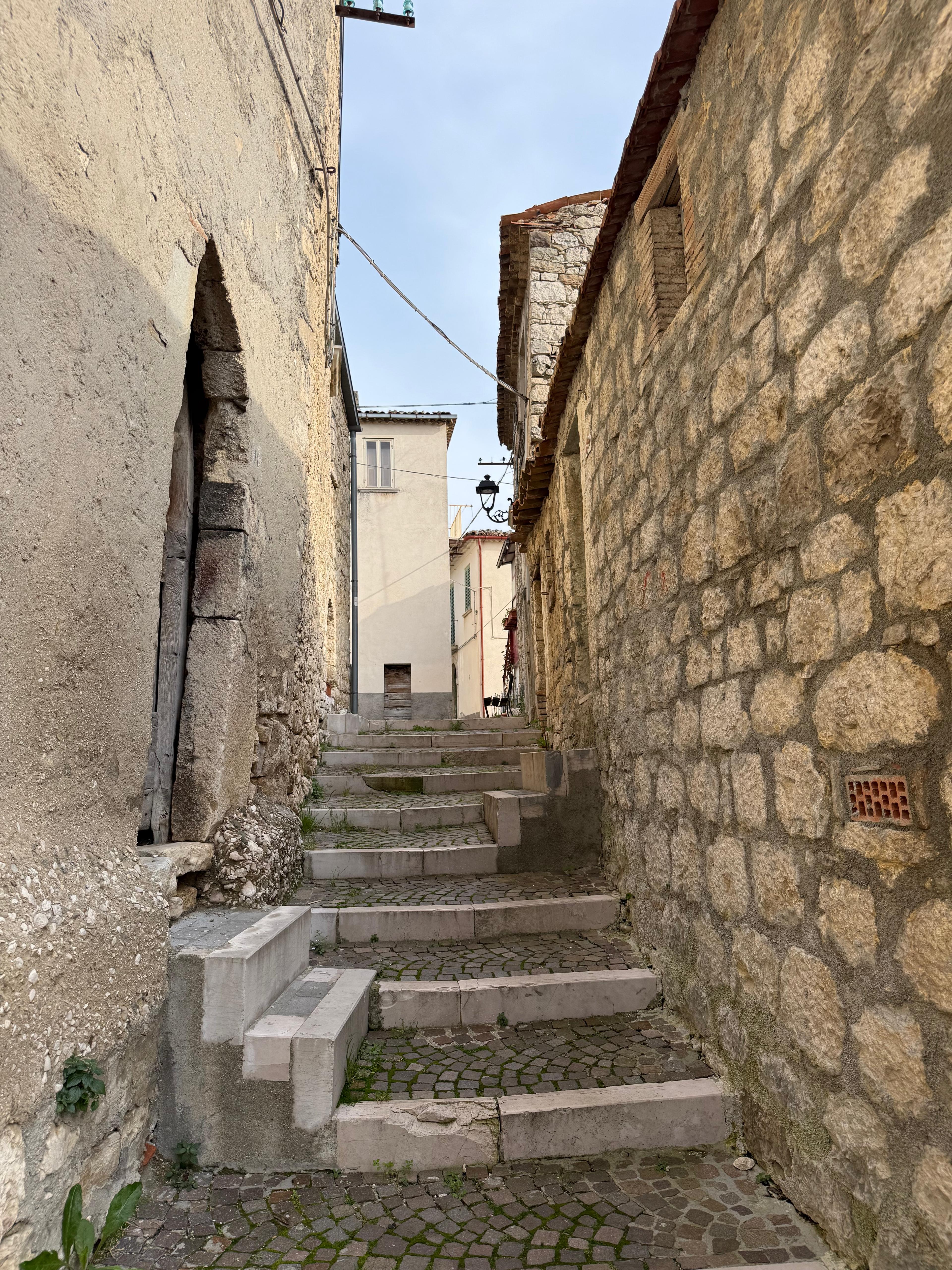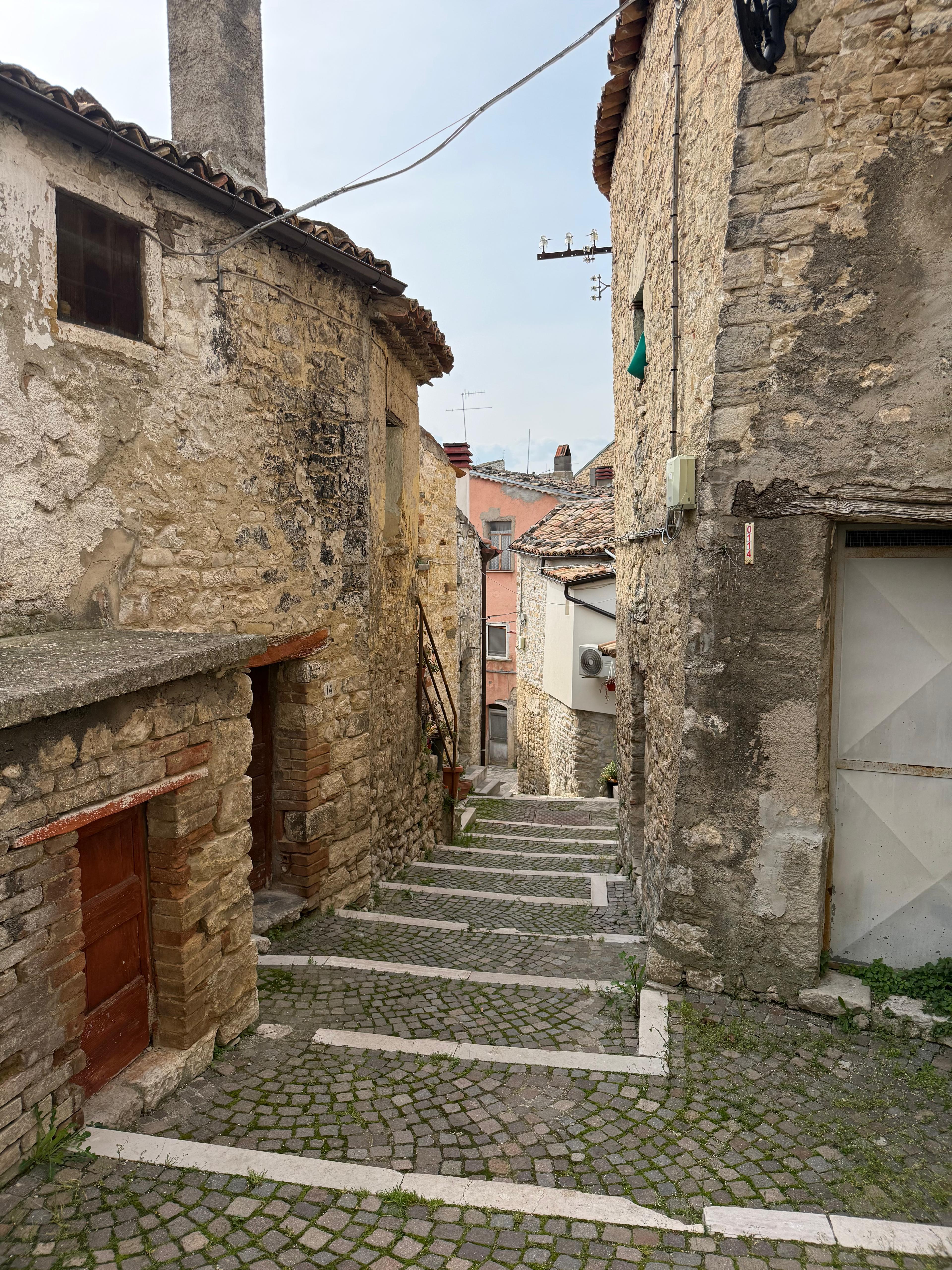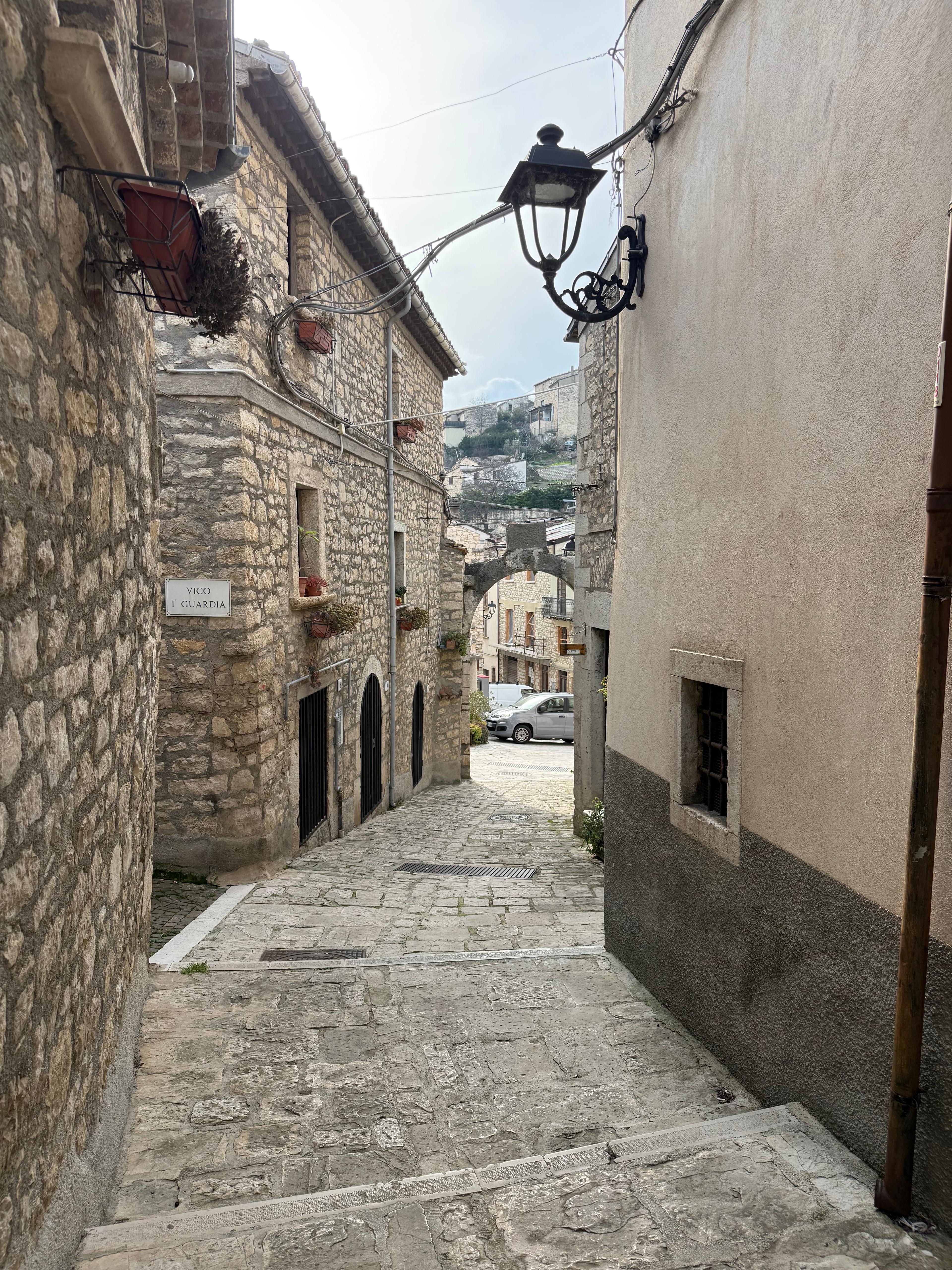 Esplorare il territorio, guardare, annusare, sentire, toccare, assaggiare. Il territorio lo si può scoprire in tanti modi, ma di certo bisogna attivare tutti i sensi, perché non si può davvero assimilare una terra, se non facendola passare attraverso le maglie sensoriali del corpo. I sensi sono le sentinelle attente che filtrano gli impulsi del mondo, per creare una mappatura interna che ci permette di decodificarne i segnali. A Castropignano ci sono arrivato attraverso il tratturo, venendo da Torella del Sannio e procedendo in direzione di Campobasso. Il tratturo ha già di per se una sua sonorità, che richiama tempi lontani: il rumore sordo dei campanacci appesi al collo del bestiame, il vociare dei pastori che camminano in testa e in coda alle mandrie, e lo schiamazzo dei cani che fanno bene il loro lavoro di contenimento del gruppo. La piccola comunità di uomini e bestie si muove con passo lento ma costante, lungo sentieri le cui origini si perdono nella notte dei tempi, ricalcando i passi dei padri e dei nonni, spostando gli animali lungo assi viari immaginari, tracciati nell’erba, che al passare di tanto traffico, si piega, delimitando, così, i contorni di strade che sono entrate nel mito dell’immaginario collettivo. E il tratturo che percorro, non è uno dei tanti, ma il più importante di tutti, e forse uno dei primi tratturi di cui si hanno notizie certe: il tratturo che va da Castel di Sangro a Lucera. Oddio, di tratturi ce n’erano tanti. In fondo non erano altro che dei sentieri molto larghi, segnati nei campi erbosi, all’interno dei quali, a forza del passaggio di migliaia e migliaia di mandrie, il terreno si marcava con il segno inconfondibile degli zoccoli affondati nel terreno, che, alla fine, si schiacciava a tal punto da creare delle vere e proprio autostrade. Si, perché di autostrade si trattava, visto che i tratturi avevano una larghezza anche superiore ai cento metri. Quello che va da Castel di Sangro a Lucera è lungo 130 km, ed è lo stesso che i pastori, e le bestie, percorrevano due volte l’anno. Una prima volta in primavera, per abbandonare le pianure pugliesi, dove, durante i mesi caldi, regnava la malaria, per salire verso le montagne Abruzzesi, proprio dalle parti di Castel di Sangro, e una seconda volta a fine estate, quando lasciavano le montagne, che diventavano inospitali in inverno, per fare ritorno alle pianure del tavoliere, dove gli animali potevano continuare a pascolare per tutto il periodo invernale. Io il tratturo l’ho percorso comodamente seduto in una macchina, dosando l’acceleratore, per rallentare al massimo quel viaggio, e per sentirmi parte del paesaggio, che, già di per sé, inneggiava alla lentezza e al fare con calma. A Castropignano ci sono arrivato superando una collina, al di là della quale, in basso, si vedeva la forma allungata del paese, disteso sulla cima di un colle, in fondo al quale si vedeva bene la sagoma di un castello, in parte diroccato, dal colore flebile del giallo, che si integrava bene con il paesaggio circostante. Ci sono arrivato dalla Statale 168, venendo da Torella, e mi sono fermato in uno slargo, parcheggiando in maniera posticcia nei pressi del Bar One. La visione di un bar mi ha rianimato. Ho bisogno urgente di un caffè, ma il miraggio è durato poco: il bar è chiuso per turno di chiusura settimanale. Non so dire quanti pensieri mi siano passati per la mente, non so se fosse di più la voglia del caffè o la rabbia che montava dentro per non averlo preso. Lascio la macchina parcheggiata lì, in modalità provvisoria, che subito è diventata definitiva. Le strade sono deserte: un solo uomo, che passa con delle carte in mano, mi dice che tutto sommato la macchina può stare lì, e mi avvisa che il bar, per oggi, resterà chiuso. Mi da’ indicazioni su come arrivare a quel castello che avevo visto da lontano. Mi inerpico per Via Umberto I e poi per Via Roma, fino a Piazza San Marco, e da lì, oltrepassata la casa comunale, salgo ancora più su, fin dove la strada finalmente diventa pianeggiante e poi con una discesa dolce declina verso il castello, che sorge come una chimera, finalmente raggiungibile, in fondo alla Via Leone. Le case costruite in pietra mi portano in un’altra dimensione. Mi sento come se fossi entrato in una fiaba, mentre un vento sottile mi accarezza il volto e solleva dolcemente la visiera del mio cappello, che mi protegge da un sole fin troppo forte, a dispetto del mese in cui siamo. Marzo si muove sicuro con i suoi profumi ed il risveglio della natura, che, a primavera, osa l’audacia di chi si mette in marcia dopo un lungo riposo. Il sole scalda le cime degli alberi, che, con prepotenza, emettono gemme dai mille colori e dai profumi opulenti. Tutto intorno il canto degli uccelli, mentre nitidi falchi volteggiano sopra la mia testa pensierosa. Arrivo facile al Castello D’Evoli, ristrutturato, si vede, ma conservando, o, per meglio dire, fotografando gli acciacchi del tempo in colate di calce che ne hanno immortalato le fattezze volute dalle inedie del tempo. Corro in direzione delle mura. Mi piacciono, mi attraggono, le sento mie, le tocco, ne sento il profumo. Le pietre, che in apparenza paiono disordinate, si impilano, l’una sull’altra, dando forma a quel castello, che mi ricorda i suoni e le vite d’altri tempi. Il Castello D’Evoli domina la valle sottostante e con essa il più importante asse viario moderno della zona, ossia la Bifernina. Entro nel castello, attraversando un alto arco, che mi introduce in un mondo che, oramai, non esiste più. Penso agli uomini e alle donne che lo vissero, a quelli che lo costruirono e a quelli che lo curarono e custodirono nel corso dei secoli. Un’opera del genere, che arriva fino a noi, non è il frutto del puro caso, ma il lavoro incessante di persone che hanno creduto ciecamente nella conservazione delle tradizioni e della cultura locale. Tutto ciò mi commuove, mentre da un muretto basso mi fermo a guardare, estas