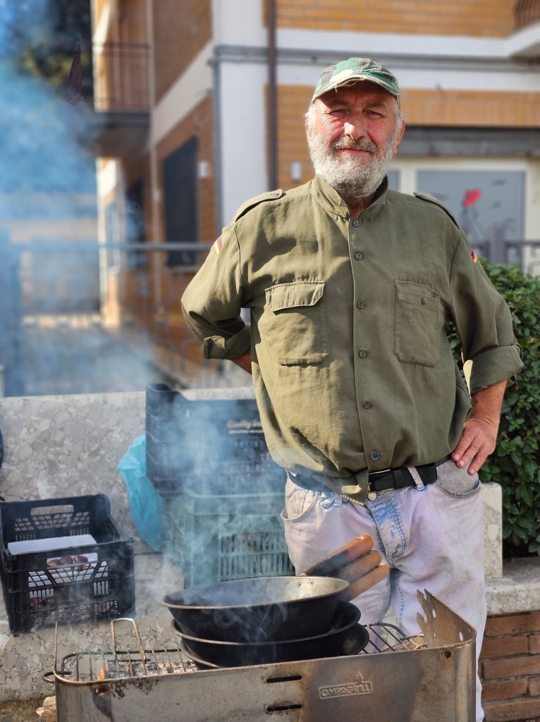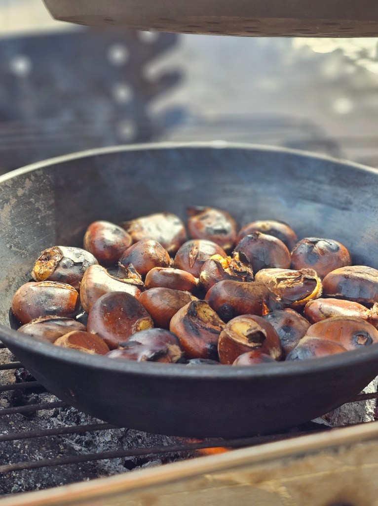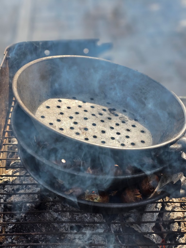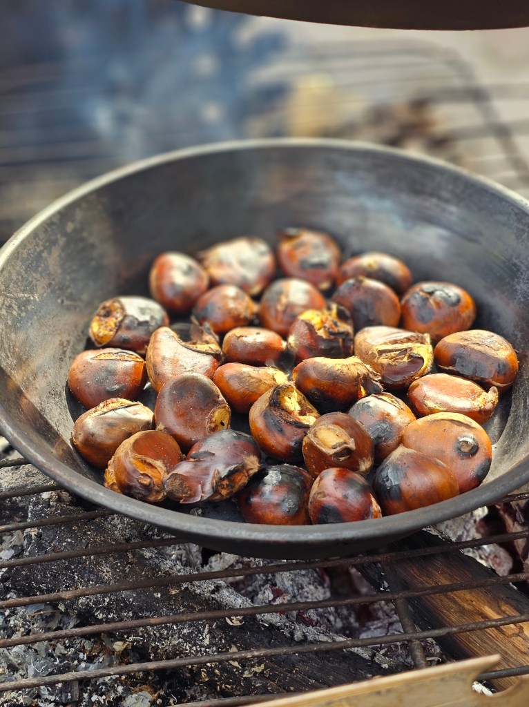 Incontri che si possono fare solo in luoghi che vivono a stretto contatto con la natura, come la mia amata Sturno. Sturno è circondata da km e km di castagneti e quindi vive ancora qui, il mestiere del castagnaro! Totò Finamore (meglio castagnaro di Valle Ufita) è uno degli eredi di questo antico mestiere e ancora oggi raccoglie castagne e prepara gustose caldarroste. La mattina dice decisamente bene! Io mangio!