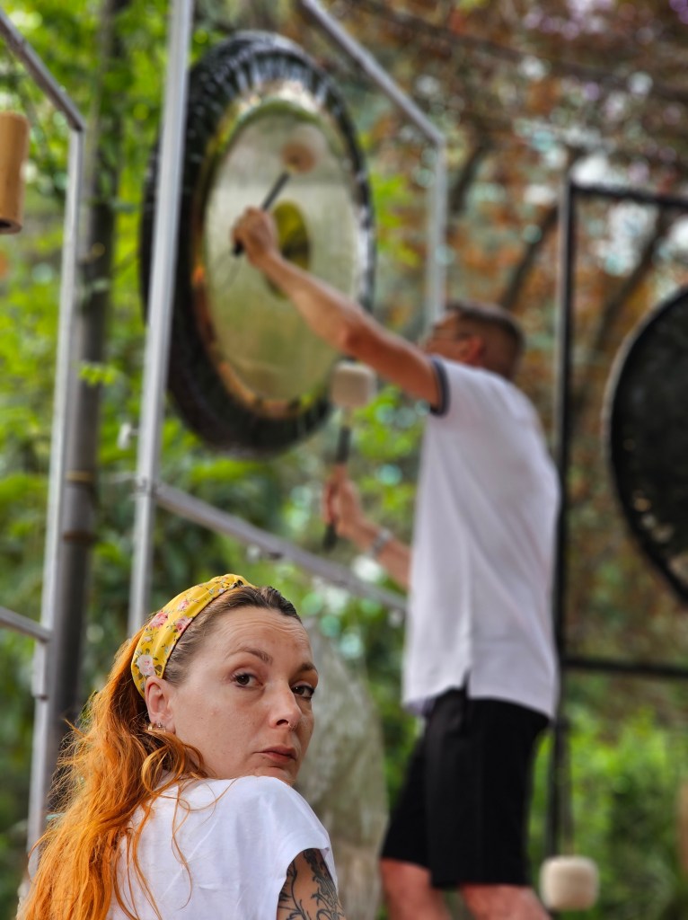 Non lo posso negare, l’evento di OLOS Benessere che più mi è piaciuto, per mia formazione musicale, e per mia passione, è stato quello del “Bagno Sonoro di Gong” . Si tratta di una full immersion nel suono dei Gong, ma anche di altri strumenti ancestrali, per circa un’ora. L’utente, o, nel nostro caso, gli utenti giacevano distesi, in pieno relax, ed in atteggiamento ricettivo delle onde sonore in cui ci si è immersi.
